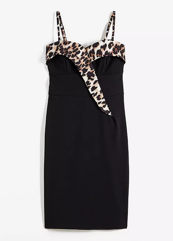 Cami strap dress with a fitted shape and leopard print trim. Length approx. 98 cm.