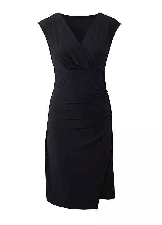 A wrap dress with cap sleeves, ruching and a slit hem. Machine washable. 95% Polyester, 5% Elastane. Length approx. 96 cm.