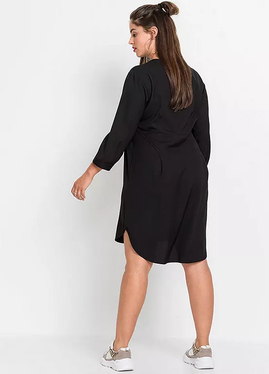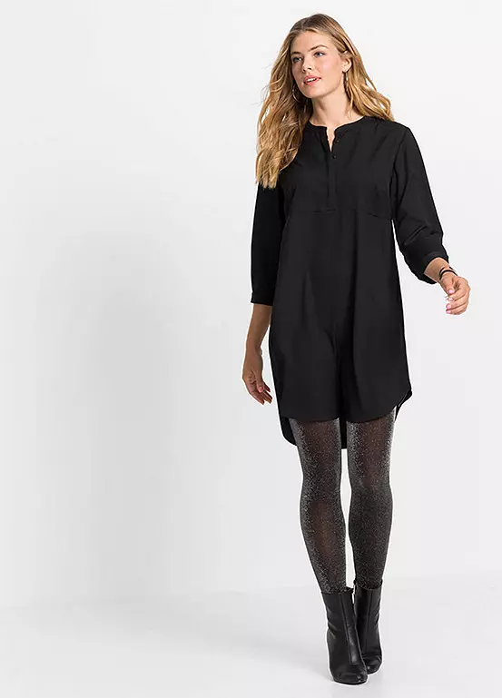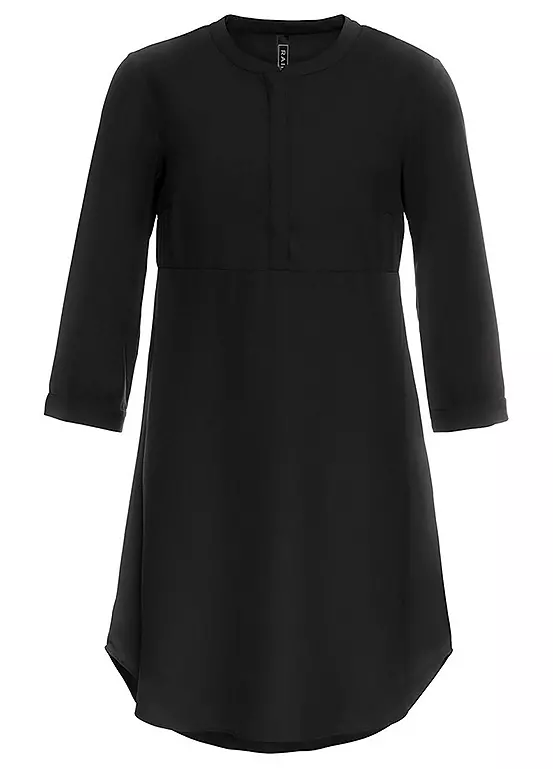 With its collarless design and button bodice, this long sleeve dress has a folksy feel to it. Machine washable. 100% Polyester. Length approx. 98 cm.