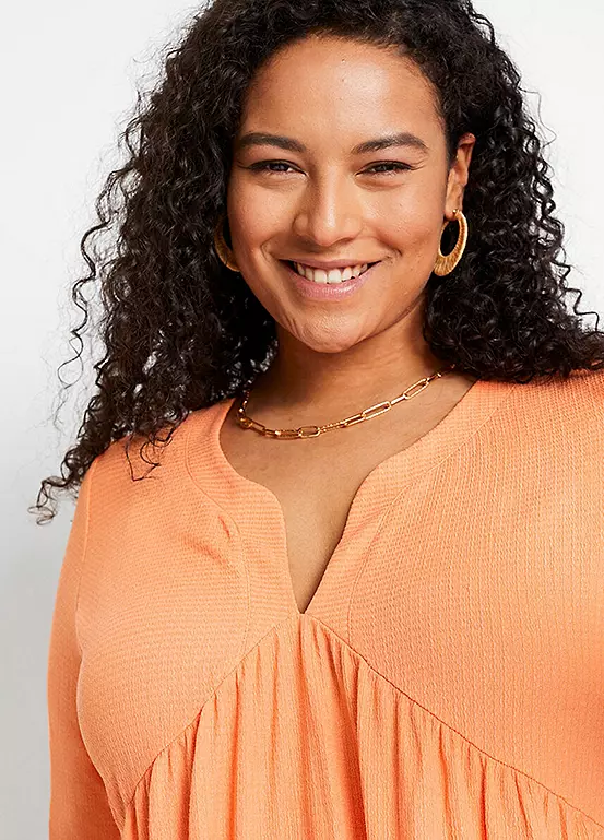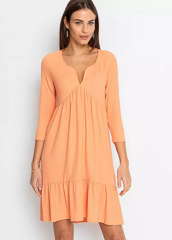 Tunic dress with a V-neck bodice and a flounced hem. Length approx. 94 cm.