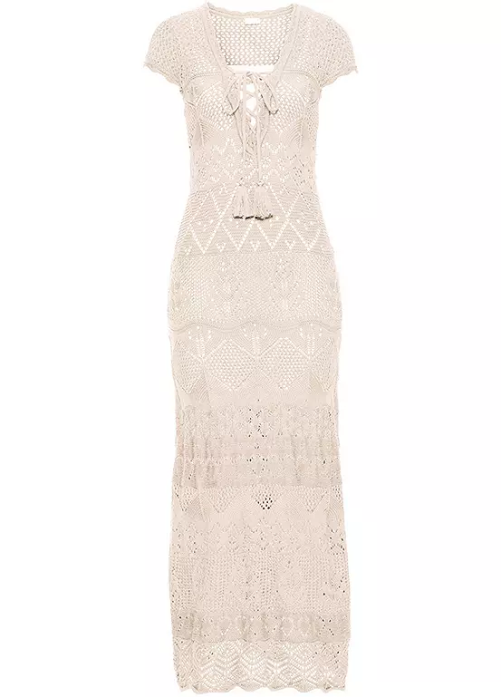A semi-sheer crochet knit and the ankle length lend this summer dress a distinctly boho feel. There’s lining to protect your modesty! Machine washable. 50% Polyester, 50% Cotton. Regular length approx. 140 cm.