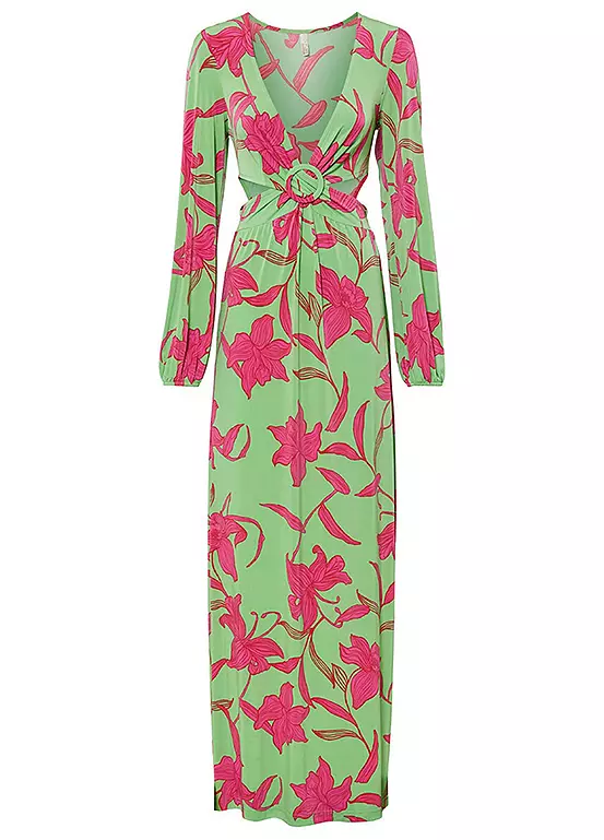 Fashionable maxi dress with cut-outs and balloon sleeves. Length approx. 136 cm.