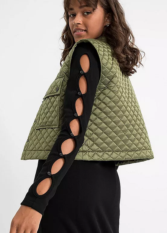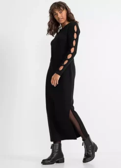 Midi length dress with cut-out sleeves. Machine wash. Length approx. 132 cm.