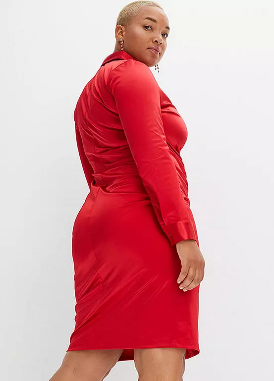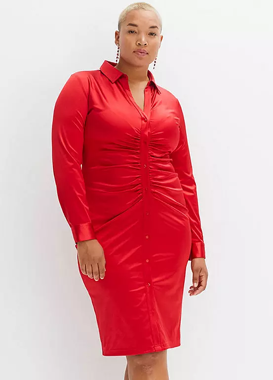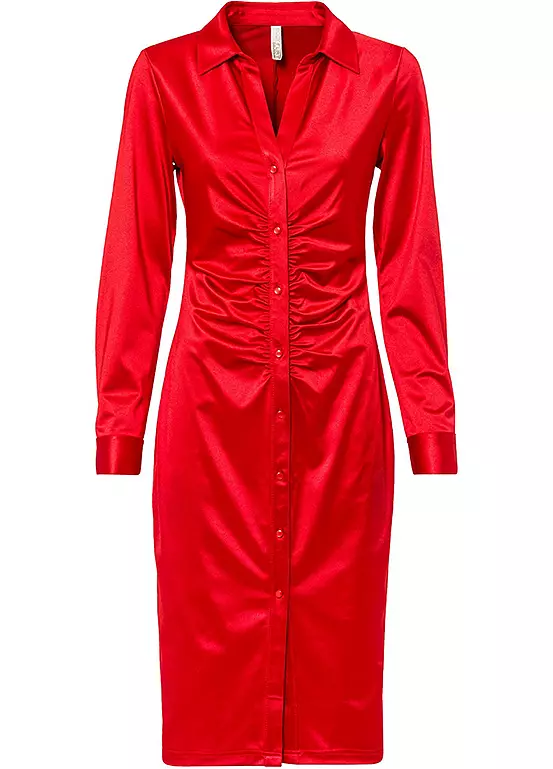Shirt dress with a button fastening and long sleeves. Machine washable. 94% Polyester, 6% Elastane. Length approx. 108 cm.