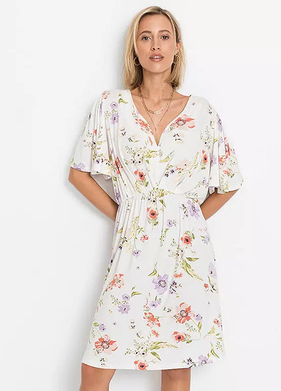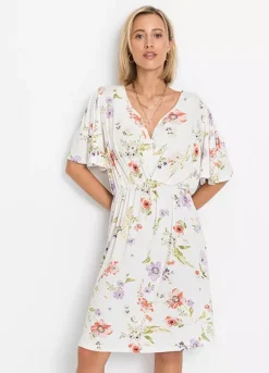 Modern dress with a flared skirt and half length sleeves. Washable. Length approx. 94 cm.