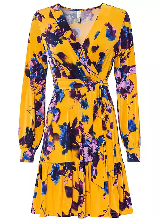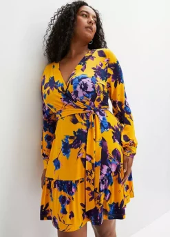 Swinging A-line dress with a floral pattern. Length approx. 94 cm.