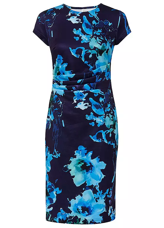 Fitted dress with capped sleeves and a floral print. Length approx. 104 cm.