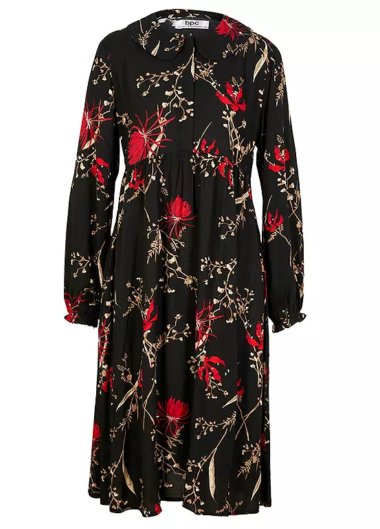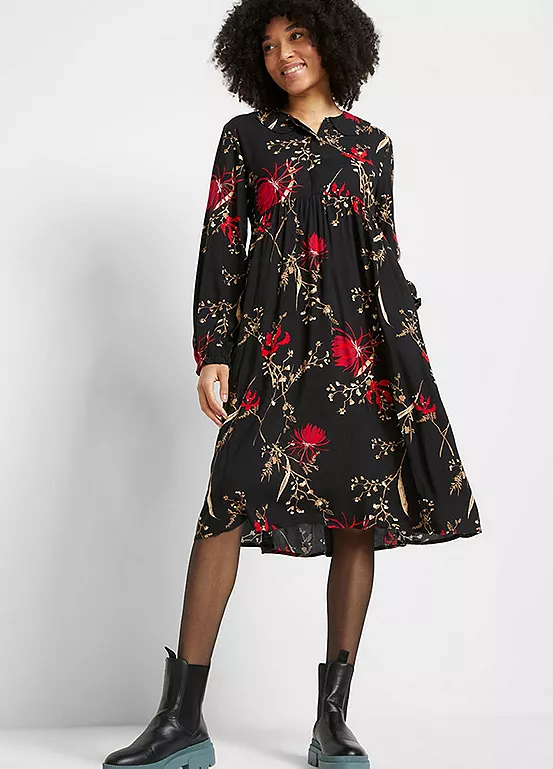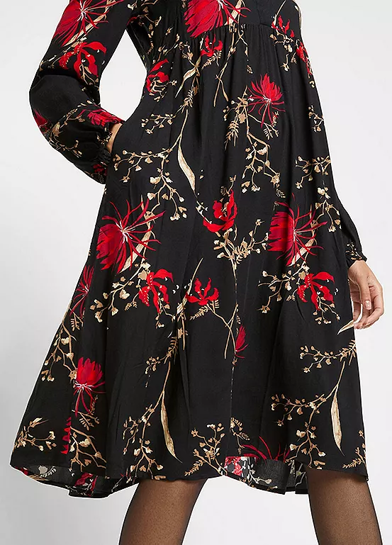 A-line viscose dress with a floral print. Length approx. 108 cm.