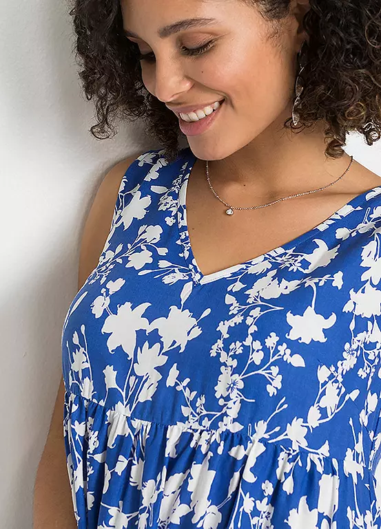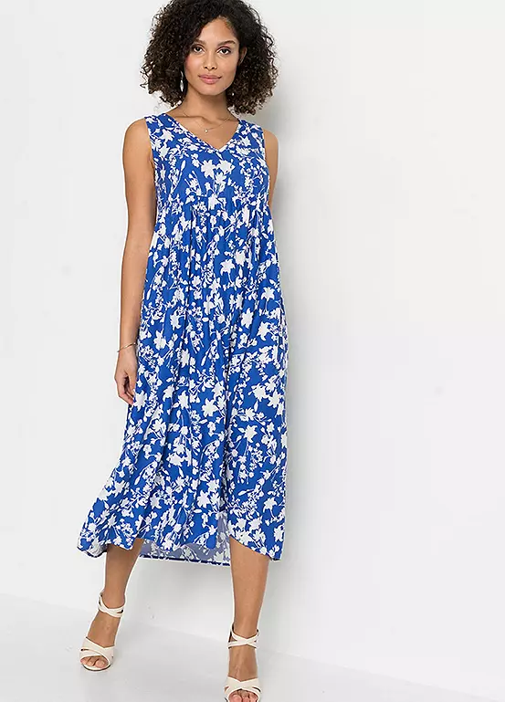 Sustainable viscose dress with a pretty floral design and a v-neckline. Length approx. 120 cm.