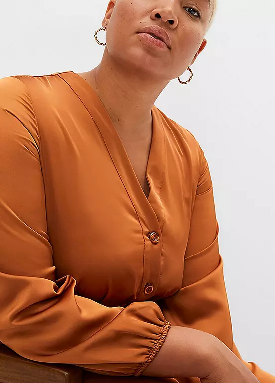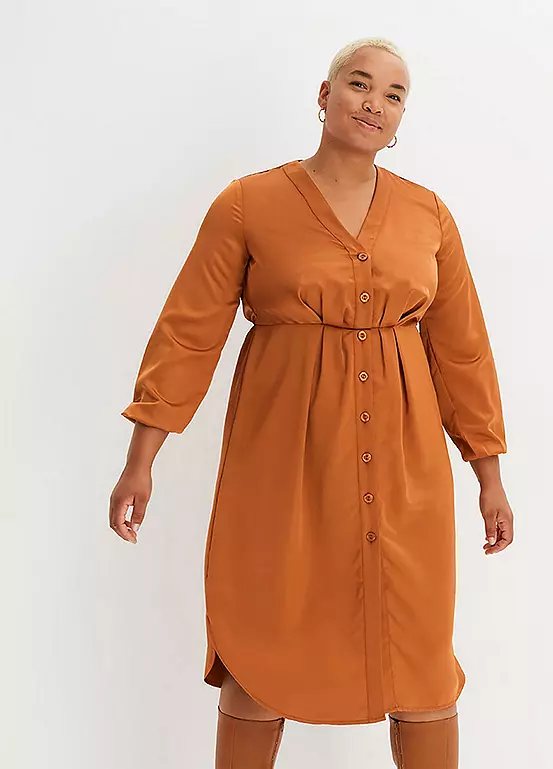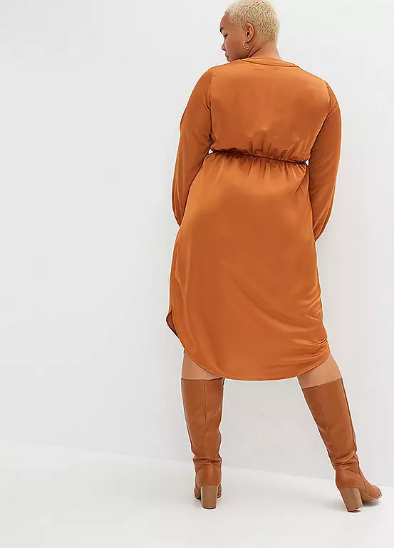 Satin midi dress with button fastening and waist ties. Machine wash. Length approx. 120 cm.