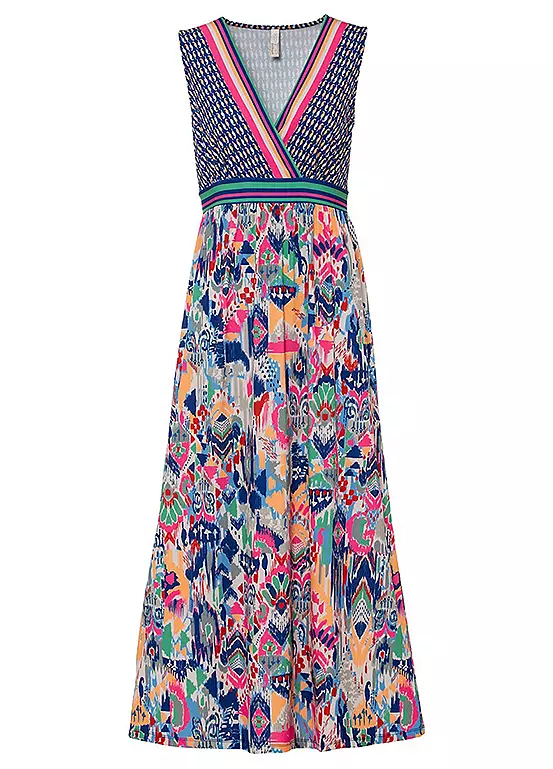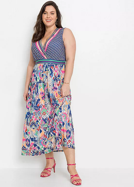 Sleeveless dress with a wrap bodice. 95% Polyester, 5% Elastane. Length approx. 136 cm.