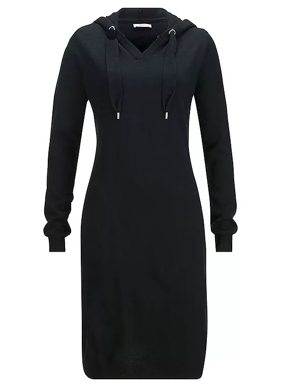 Knitted dress with V-neckline. Machine washable. 100% Acrylic. Length approx. 106 cm.