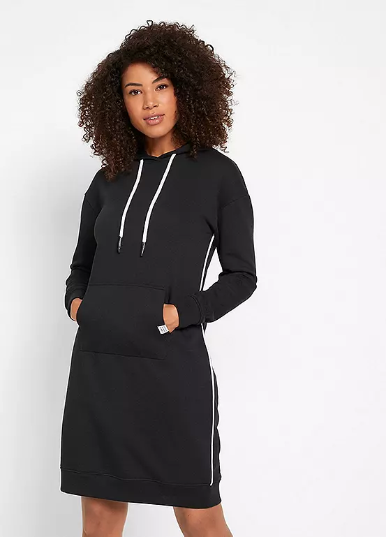 Hooded sweater dress with side piping. Washable. 96 cm.