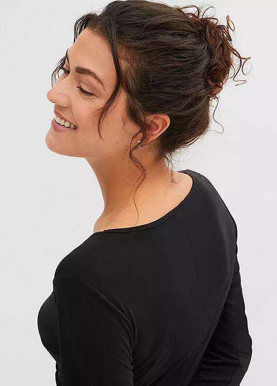Wrap jersey dress with a cut-out collar. Length approx. 94 cm.
