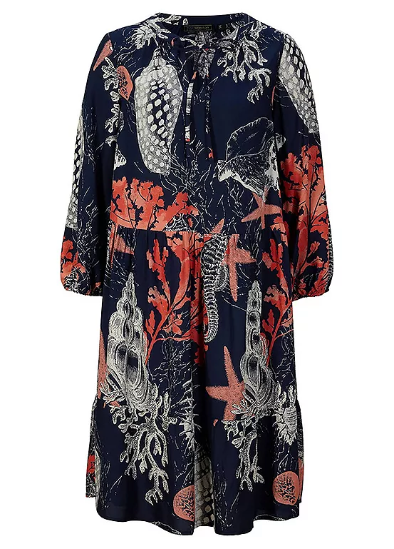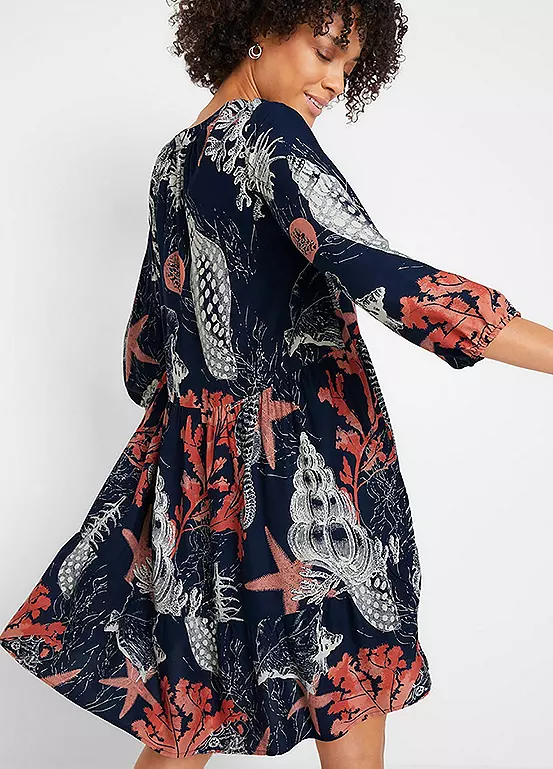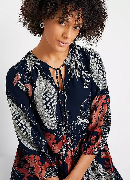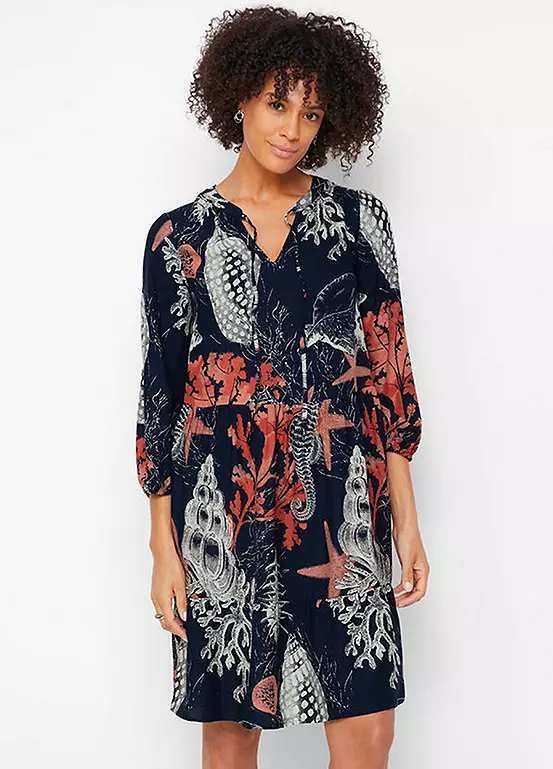 Tiered dress with a boho print and ties. Machine wash. Length approx. 98 cm.