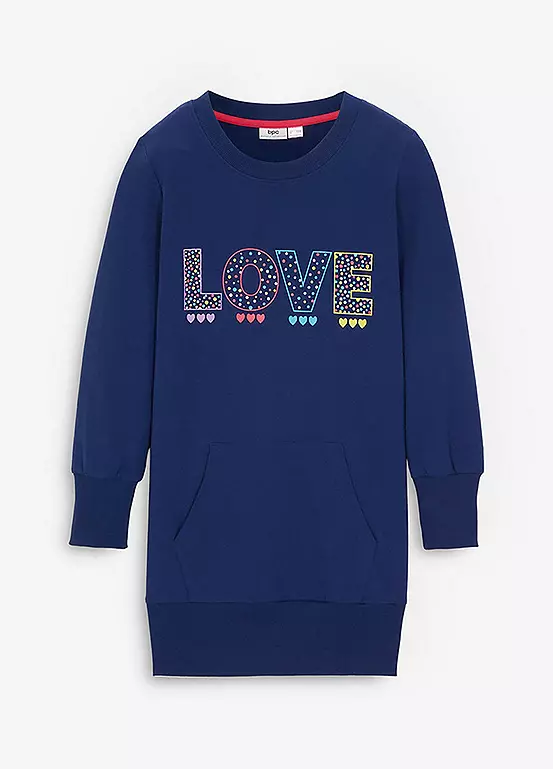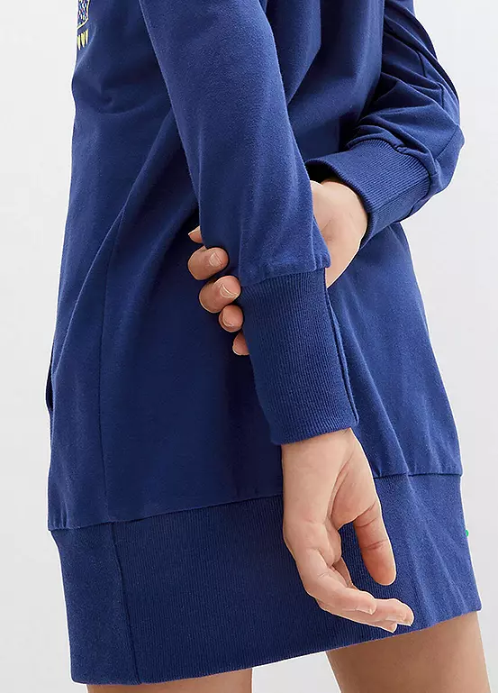 Sporty jersey dress with a slogan print. Machine Washable.