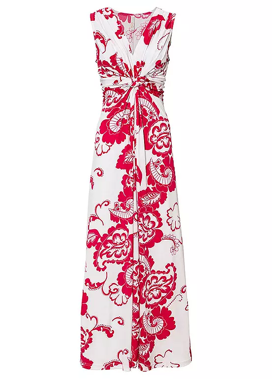 Paisley print dress with a twisted design. Machine washable. 95% Polyester, 5% Elastane. Length approx. 140 cm.