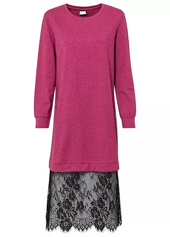 This cool sweater dress comes with a long lace skirt hem. Length approx. 120 cm.