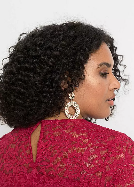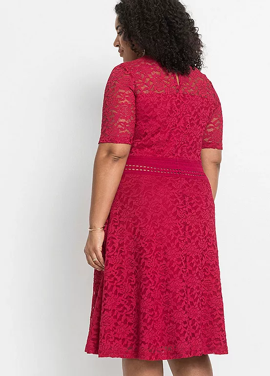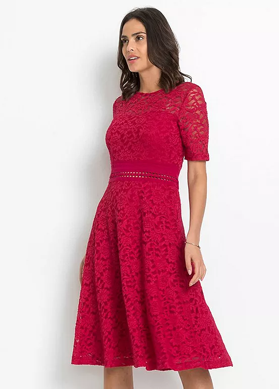 Short sleeve occasion dress with a floral lace shell. Length approx. 108 cm (42½ in).