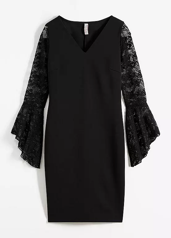Fitted party dress with huge lace sleeves. Machine wash. Length approx. 98 cm.