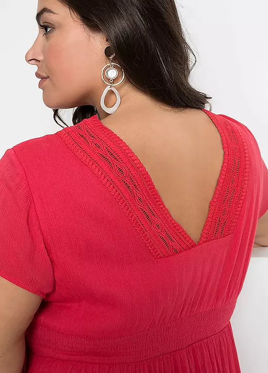 Long summer dress with crochet lace trim. Length approx. 138 cm.
