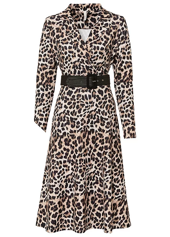A midi length dress with a leopard print. Length approx. 114 cm.