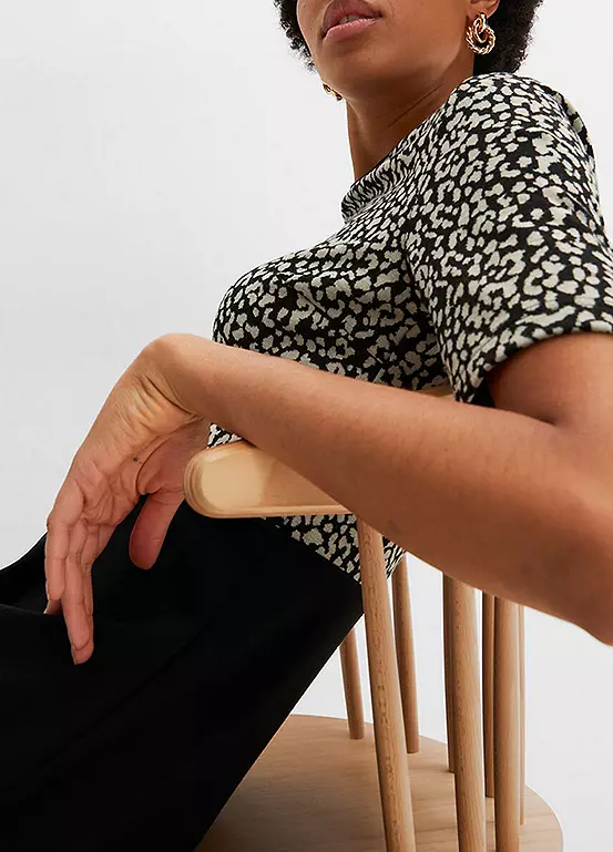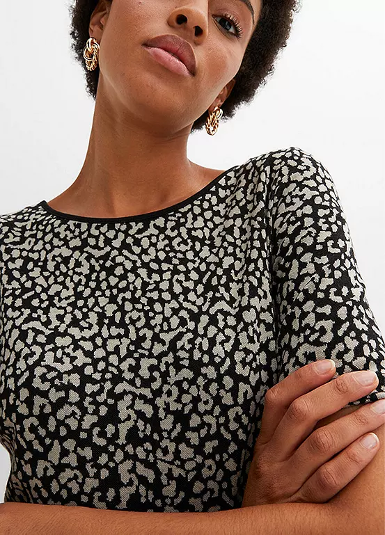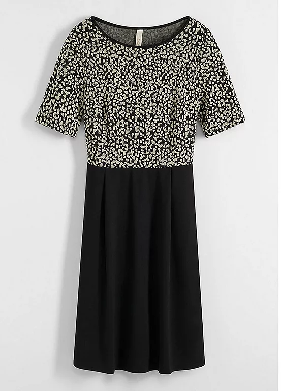 Short sleeve jersey dress with a leopard print bodice. Length approx. 94 cm.