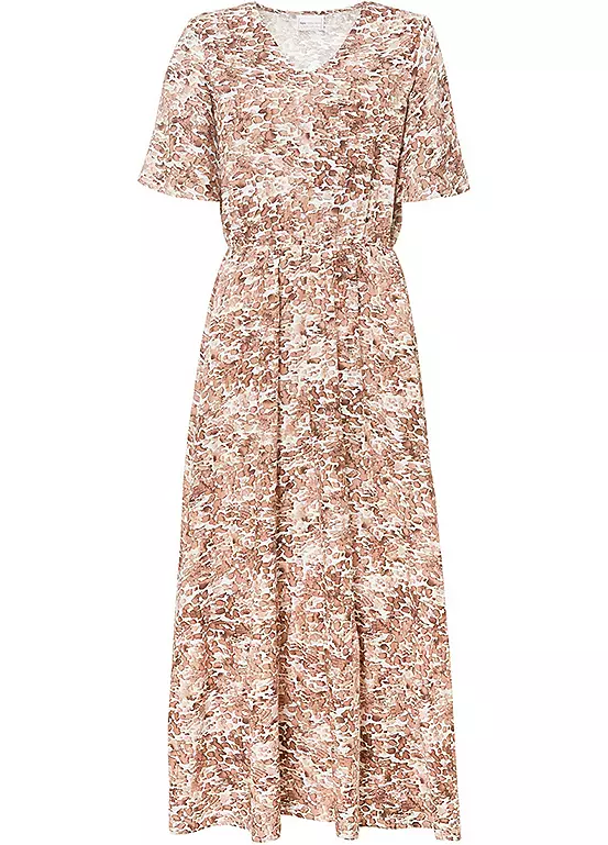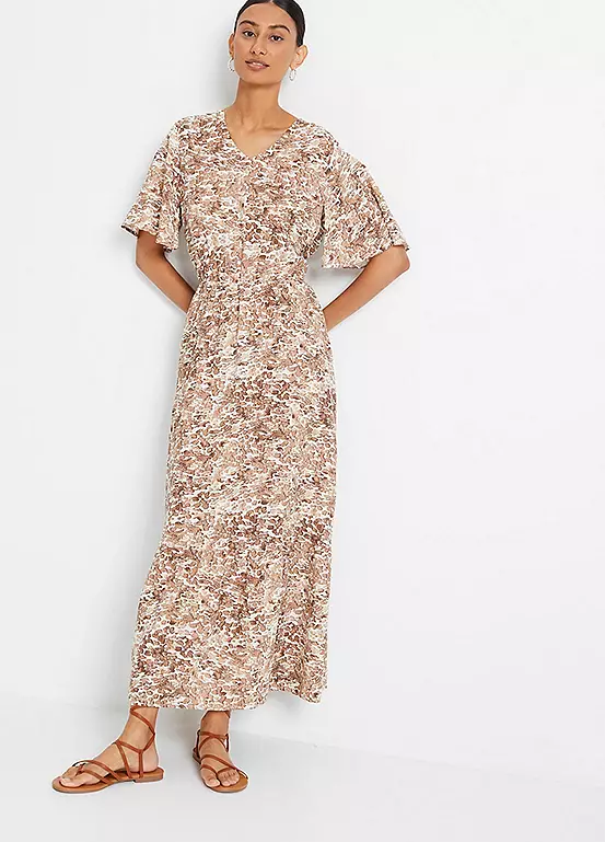 Stylish viscose maxi dress with short fluted sleeves and an elasticated waist. Machine wash. Length approx. 136 cm.