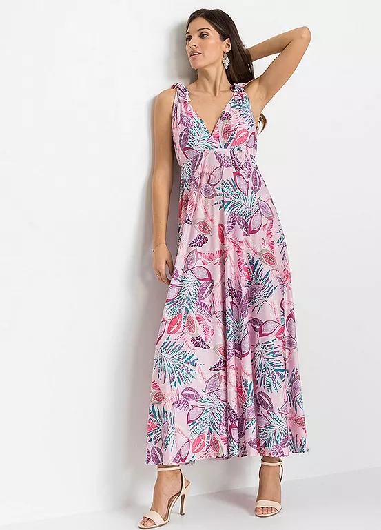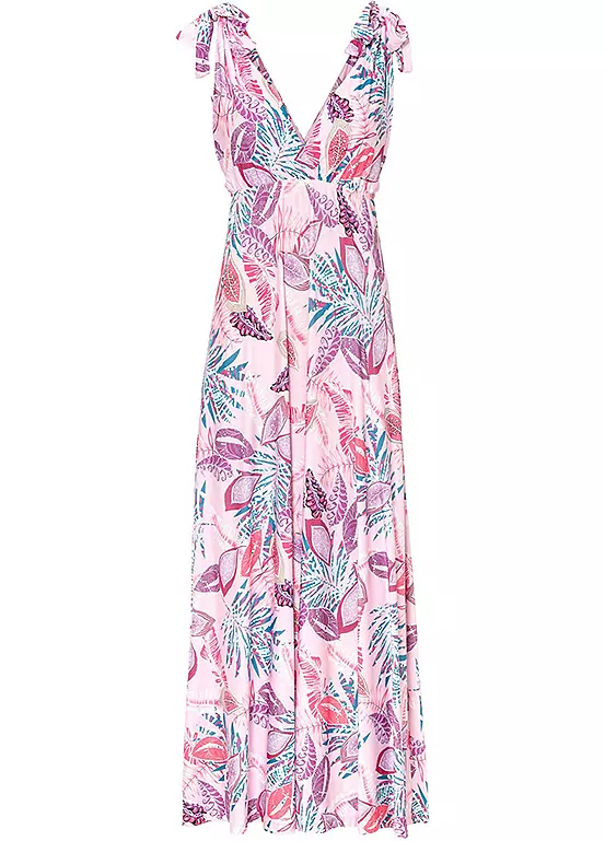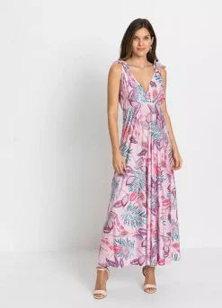 A long summer dress with a plunging neckline. Machine washable. Length approx. 146 cm.