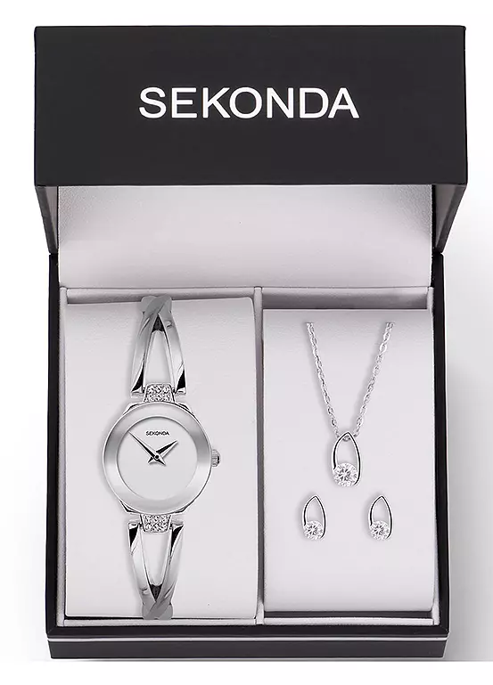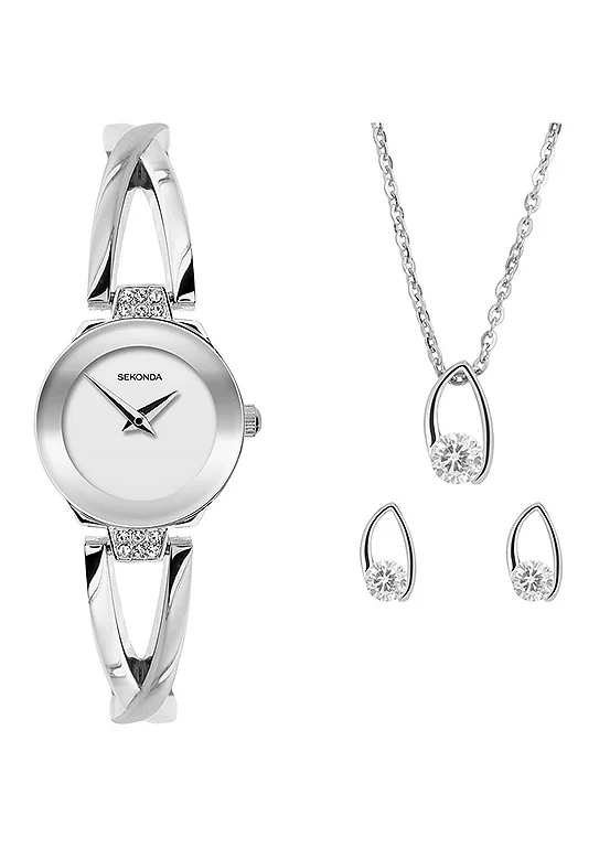 Sekonda Ladies 3 Piece Dress Gift Set With White Dial Watch, Silver Pendant & Matching Earrings