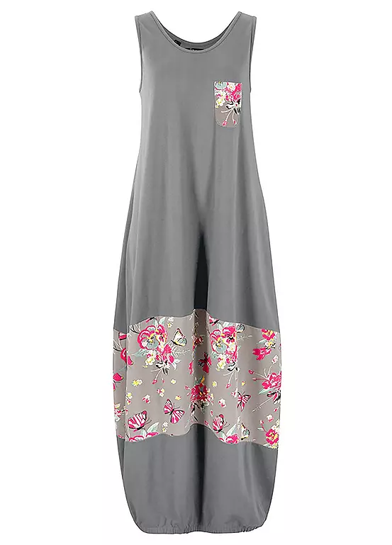 A sleeveless jersey dress with an O-shape and printed detail. Machine washable. 95% Cotton, 5% Elastane. Length approx. 136 cm.