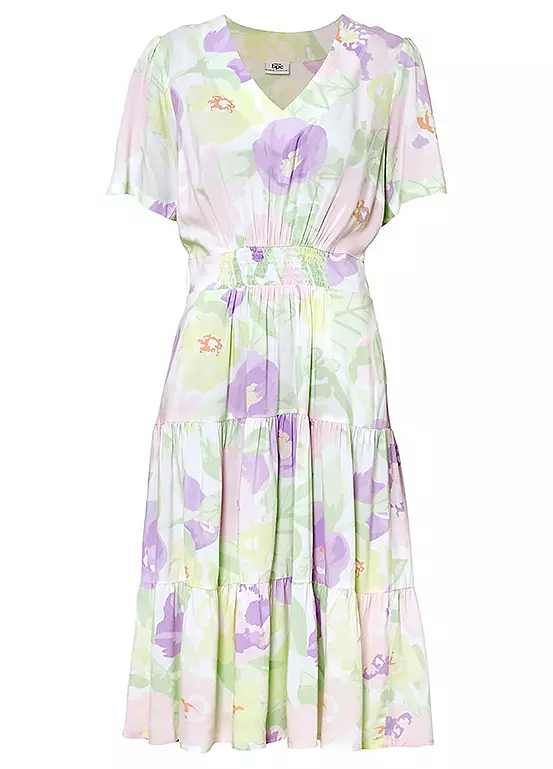 Smocked dress with a tiered skirt and pockets. 100% Sustainable Viscose. Length approx. 114 cm.