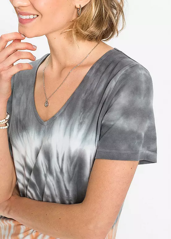 Long t-shirt dress in a striking tie dye spiral design. Length approx. 132 cm.
