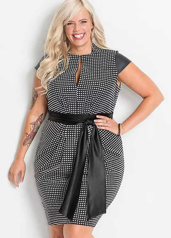 A short checked dress with pleather trim. Machine washable. Length approx. 98 cm (38 in)