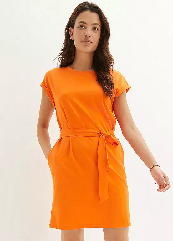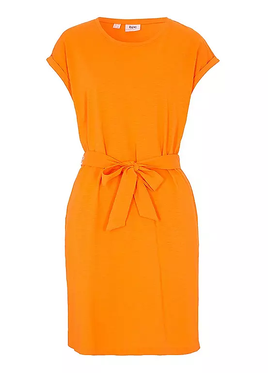 A boxy jersey dress with a waist tie. Machine washable. 100% Cotton. Length approx. 96 cm.