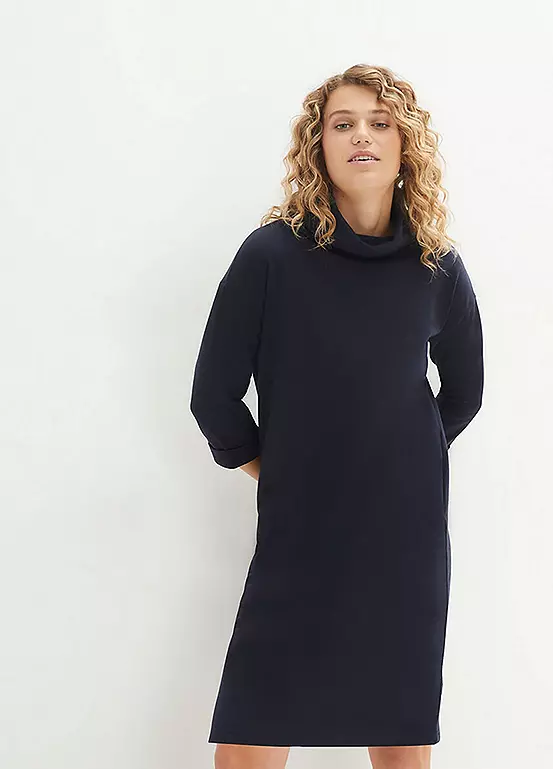 Straight cut sweater dress with a funnel collar Machine wash. Length approx. 96 cm.
